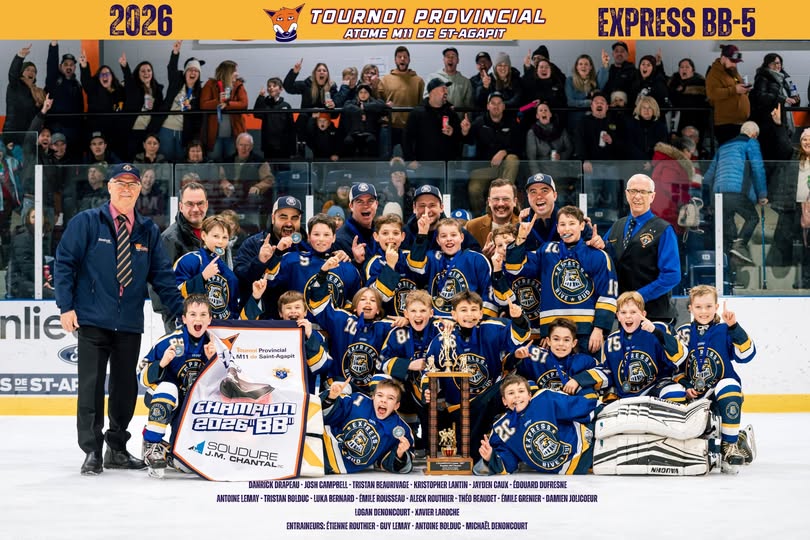 Félicitations au M11BB5 de l'Express Rive-Sud, champions à la 43e édition du Tournoi de Saint-Agapit! Une belle performance qui montre tout le talent et la détermination de nos jeunes athlètes locaux. Bravo à vous tous!