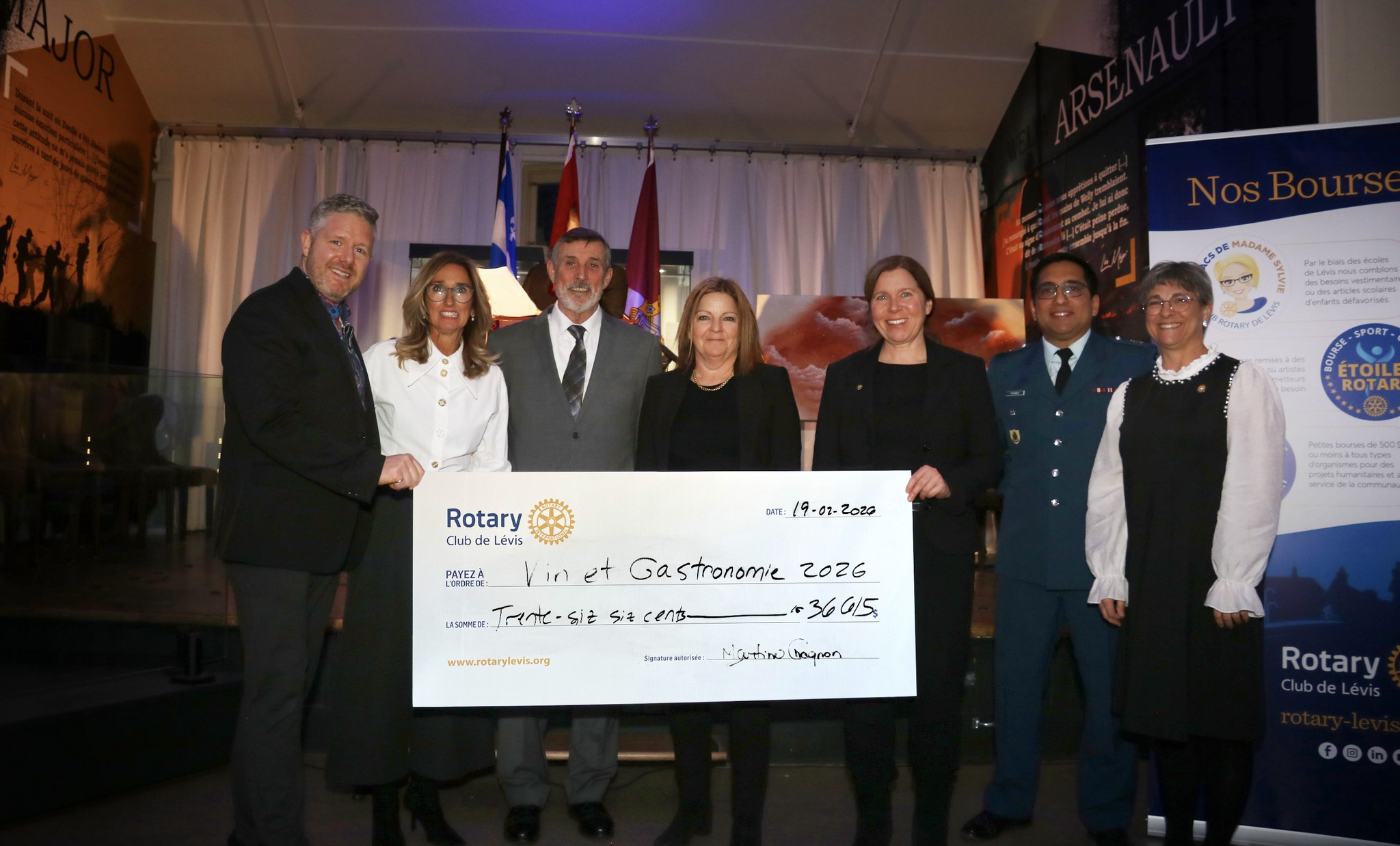 Cette soirée se déroulait au Manège militaire de Lévis, avec la participation de l’Escadron 776 Rotary Lévis, qui a offert un excellent service tout au long de l’événement. Merci de votre implication, et je suis persuadé que les membres du Club Rotary sont des partenaires de premier plan pour votre belle organisation. C’est en unissant nos forces que l’on réussit à faire vivre de si belles expériences à la communauté.