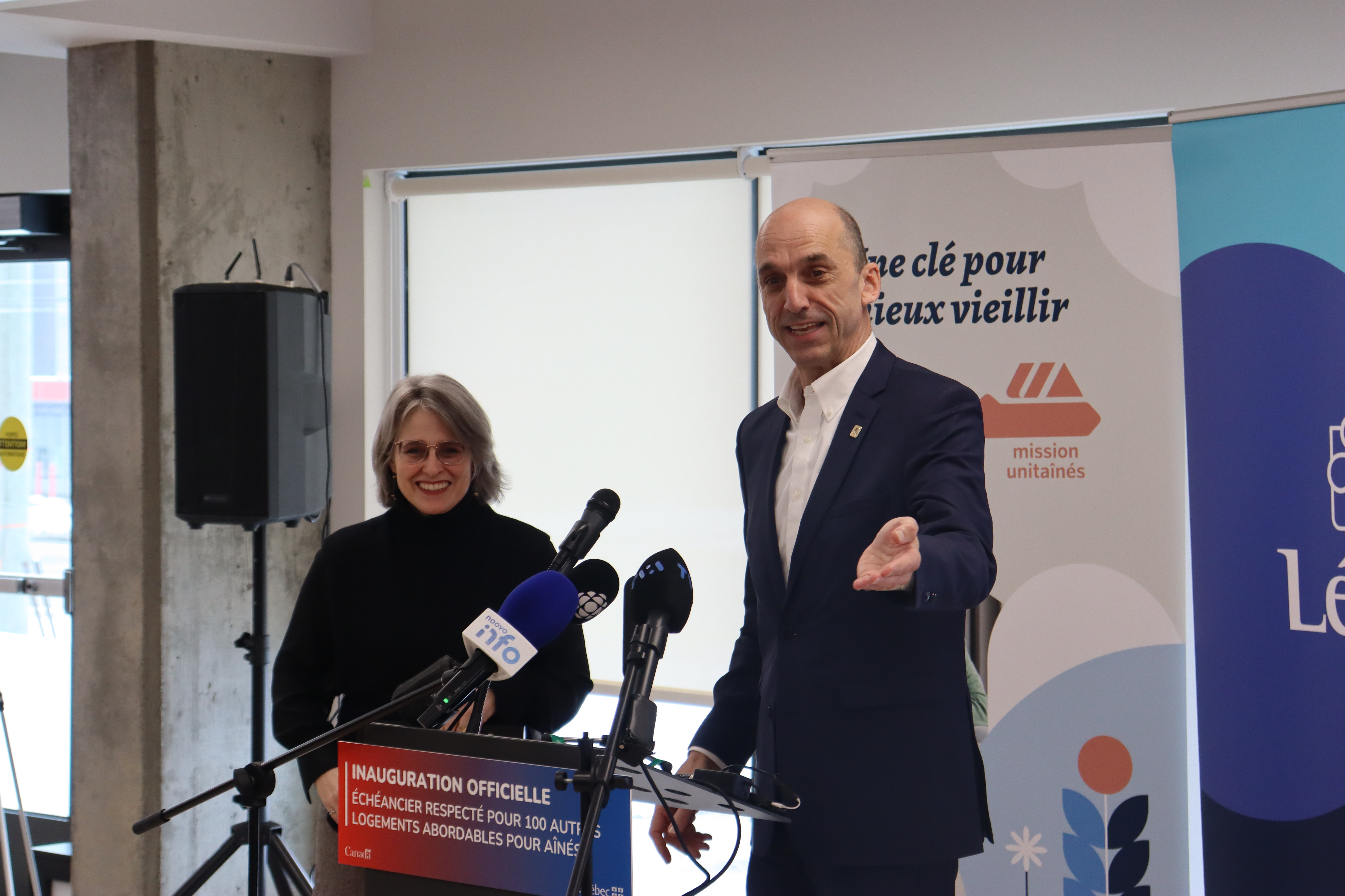 «Ça a été une belle aventure avec toute l’équipe de l’OMH de Lévis, de même qu’avec la Ville de Lévis. […] Ce projet avait pour mission de lutter contre la double crise qui est vécue au Québec et au Canada, celle du vieillissement et celle du logement», a lancé la présidente-directrice générale de Mission Unitaînés, Caroline Sauriol.