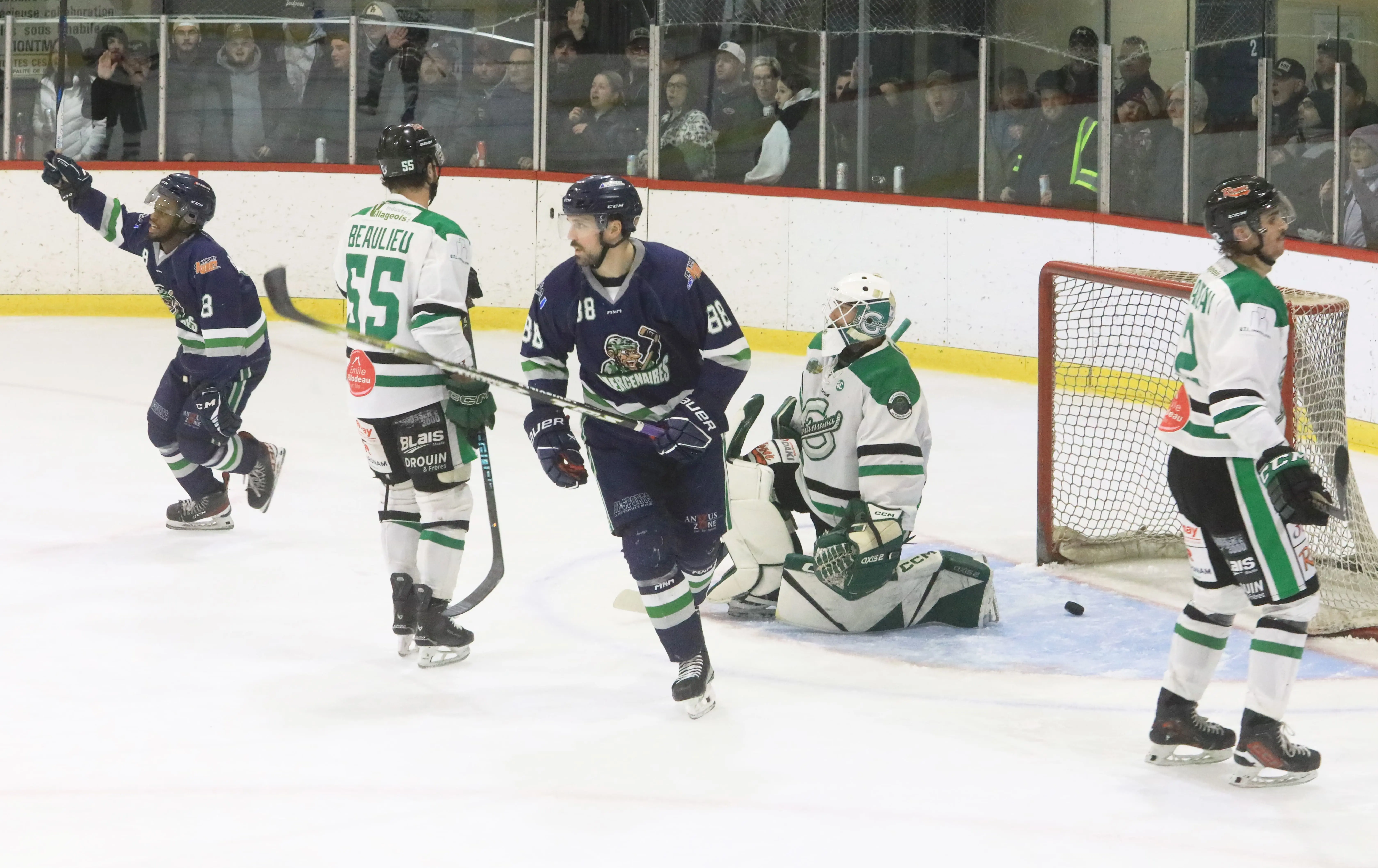 Toutefois, l’équipe hôtesse a rebondi dans le dernier tiers de la rencontre en inscrivant trois buts sans riposte pour prendre les devants 5 à 4. Toutefois, Charles-Édouard Aubert a permis aux Mercenaires de demeurer dans la partie alors qu’il a marqué à 15:10.